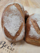 Mildly sour, chewy, grainy and versatile. 40% whole grain flour (local) and 60% white wheat flour. This bread is long fermented and takes us 36 hours to create.
